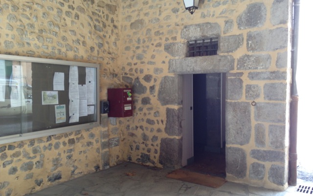 Enter in the « mairie », go the stairs one floor up, here is the briefing room
